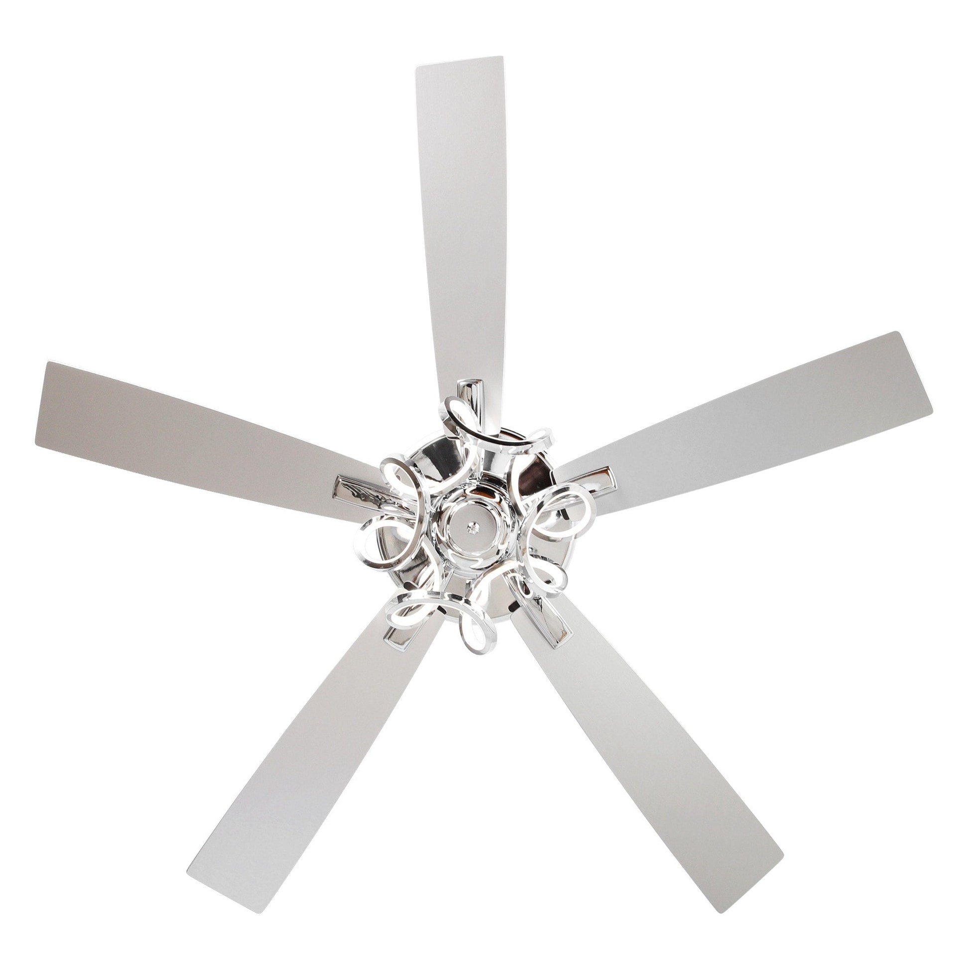 Rafraîchissez votre intérieur avec ce ventilateur de plafond LED chromé de 132 cm, avec éclairage et télécommande, conçu pour allier élégance et confort tout au long de l'année. Ce luminaire est doté d'une bande lumineuse LED intégrée à motif torsadé unique, alliant modernité et fonctionnalité. Ses cinq pales réversibles argentées et marron foncé offrent un style polyvalent, tandis que son moteur CC silencieux à 6 vitesses délivre un flux d'air puissant jusqu'à 3920 pi³/min. L'éclairage LED intégré de 24 W offre trois températures de couleur (3000 K/4000 K/6000 K) avec une luminosité réglable, vous permettant de contrôler totalement l'ambiance de la pièce. Une télécommande pratique permet de régler facilement la vitesse, l'éclairage et le mode marche arrière pour un confort optimal tout au long de l'année. Idéal pour les salons, les chambres ou les espaces ouverts, ce ventilateur s'intègre parfaitement aux styles campagnard, transitionnel et contemporain.