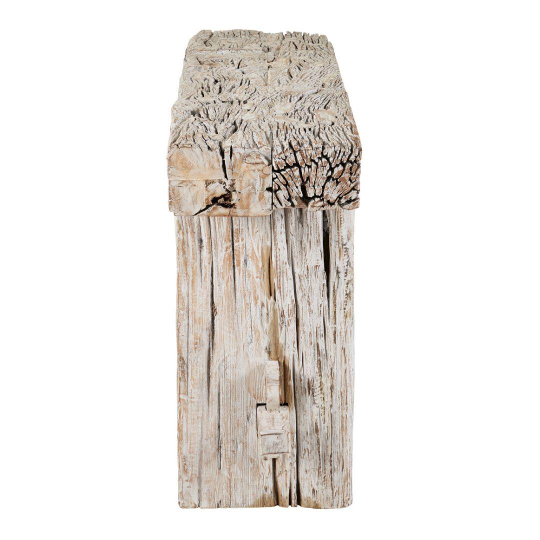 Ajoutez une touche de charme rustique avec la console à tréteaux en bois de récupération vieilli. Fabriquée en bois de récupération, elle présente une finition blanchie à la chaux et des pieds à tréteaux magnifiquement conçus, témoignant d'un savoir-faire artisanal. Chaque table est unique et apporte une touche d'originalité à votre espace. Parfaite pour un usage intérieur uniquement.