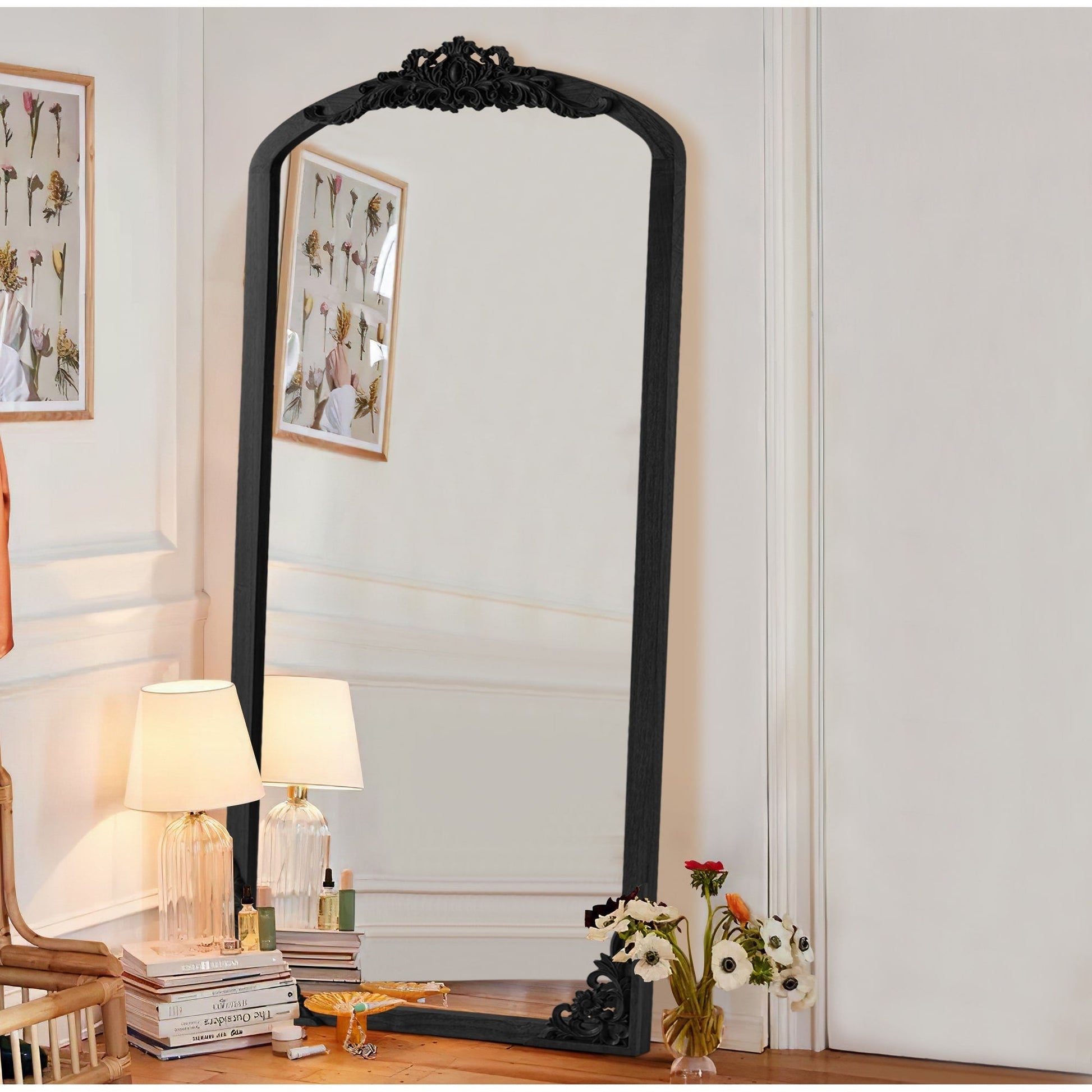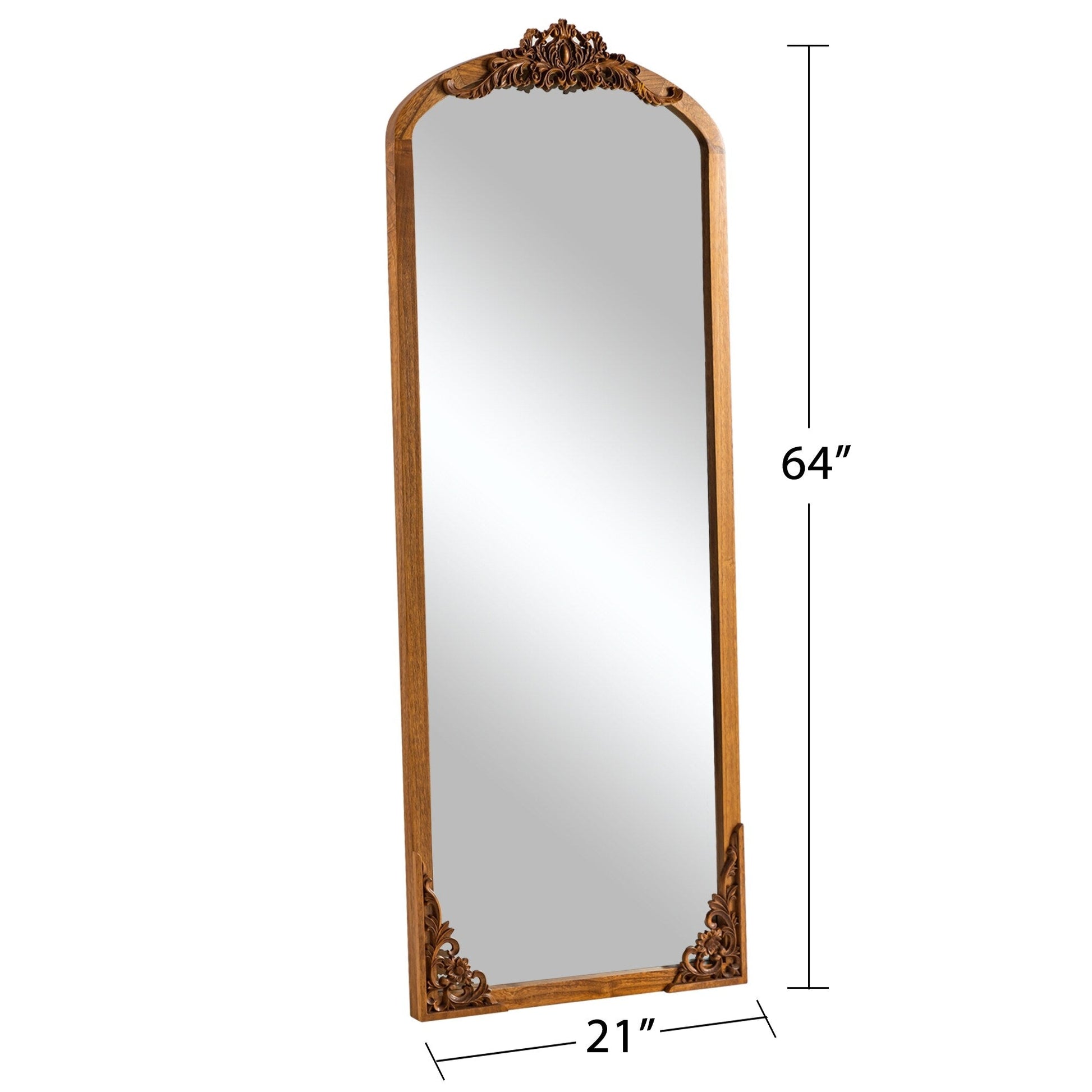 Sublimez l'ambiance de votre pièce grâce à l'élégance intemporelle de ce miroir de sol en bois massif. Sa silhouette arquée et son motif de carreaux délicats créent une illusion d'optique d'inspiration vintage qui sublime votre espace et confère une touche d'originalité à tout décor.