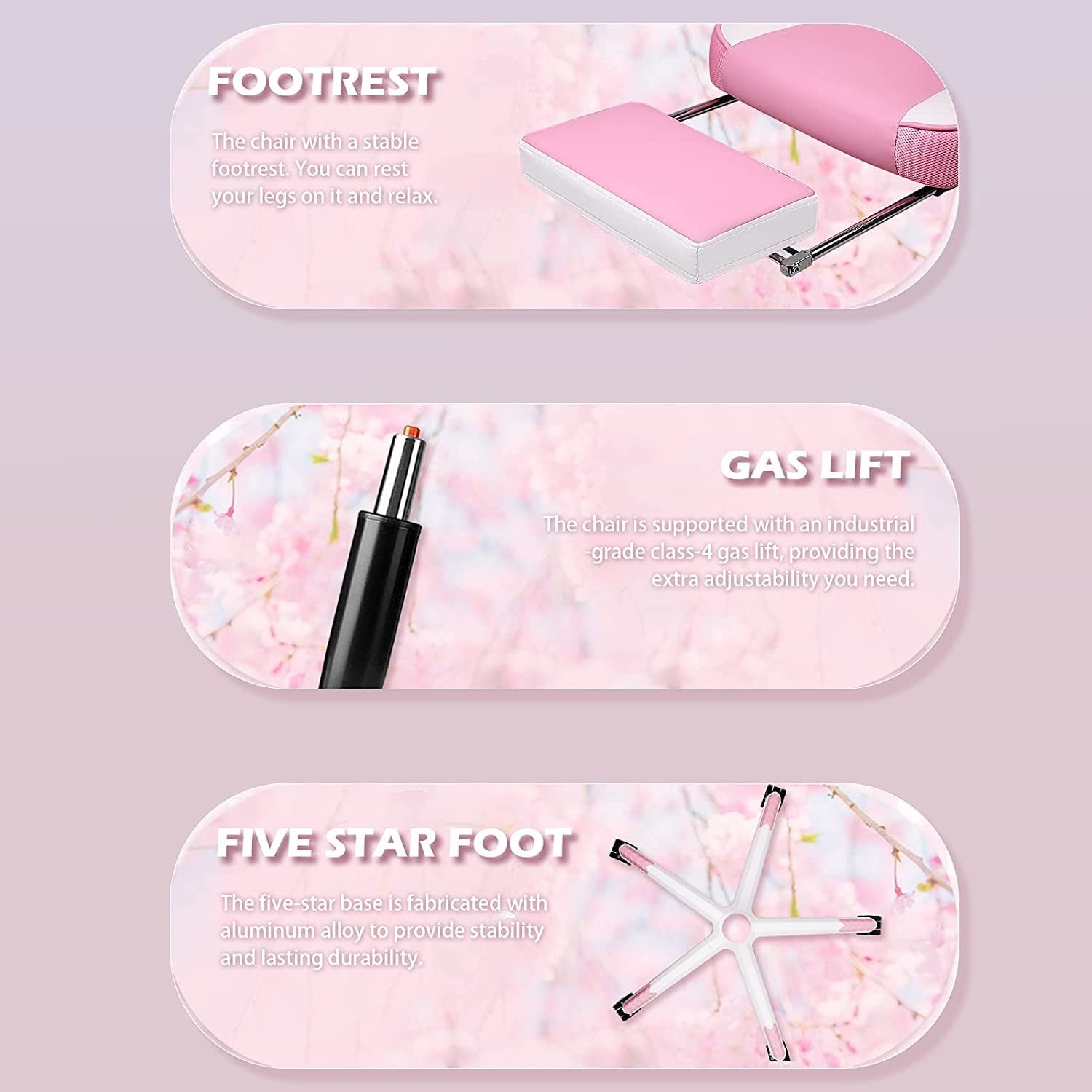 - Chaise d'ordinateur sûre et confortable : vérin à gaz de classe 4, durable, fiable et supportant jusqu'à 181 kg. Base 5 branches à haute capacité de charge. Roulettes en caoutchouc silencieuses et testées sur 1 600 km. Chaise gamer pour adultes, adolescents et enfants.