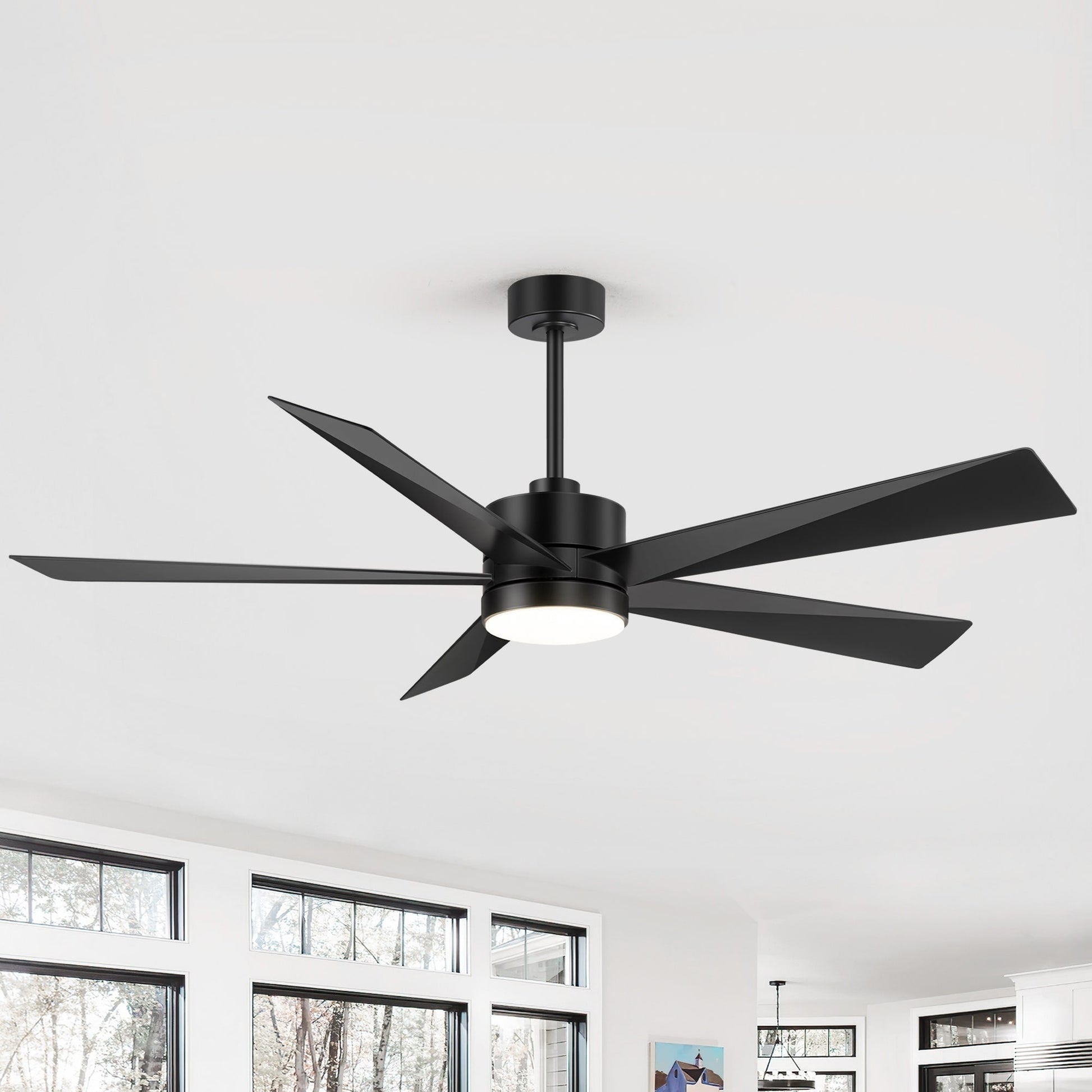 Apportez une touche de modernité à votre décoration avec ce ventilateur LED de 42/52/65 pouces. Son design à 5 pales, inspiré d'une hélice, assure une circulation d'air optimale et un attrait visuel remarquable. Doté d'un abat-jour en acrylique, il crée une ambiance agréable grâce à son design unique et sa finition noir, blanc et or. Ce ventilateur de plafond s'intègre à tous les styles de décoration.