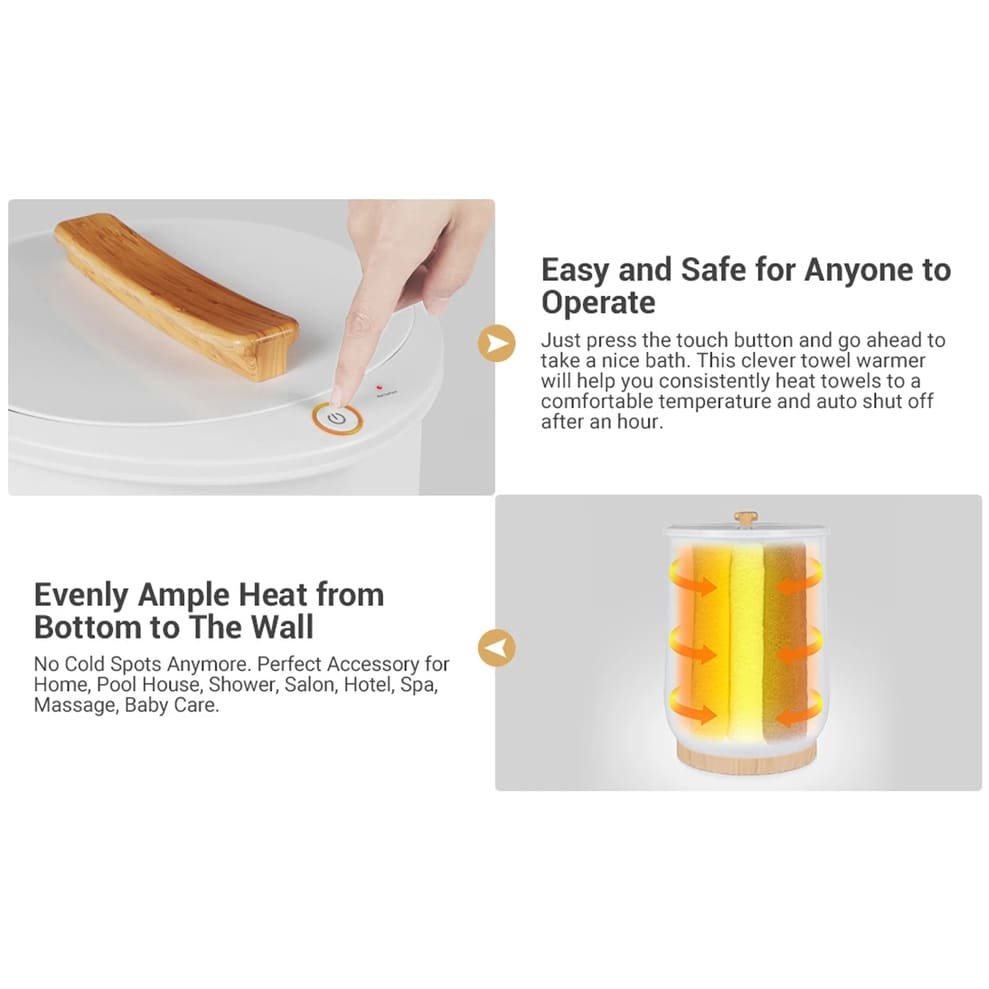 - Chauffage rapide en 1 minute : Fonctionnement ultra simple. Placez vos serviettes sèches et appuyez sur le bouton tactile avant de prendre votre bain. Après 1 minute, les serviettes chauffent rapidement. Après 6 minutes, la température atteint 50 °C et atteint environ 130 °C en une heure. Le chauffe-serviettes s'éteint automatiquement après une heure. Après le bain, vous pouvez utiliser votre serviette chaude immédiatement et profiter d'une expérience spa confortable à la maison !