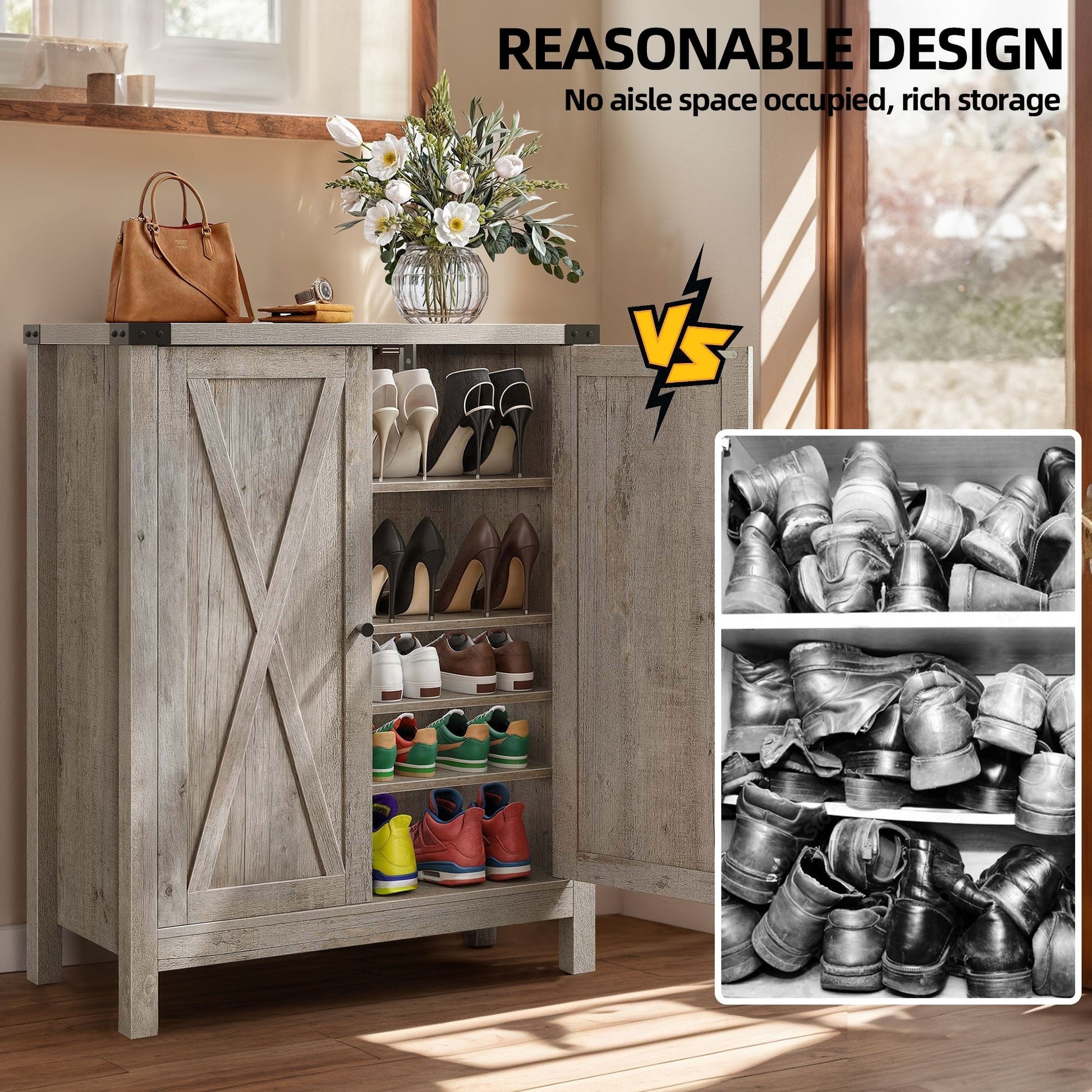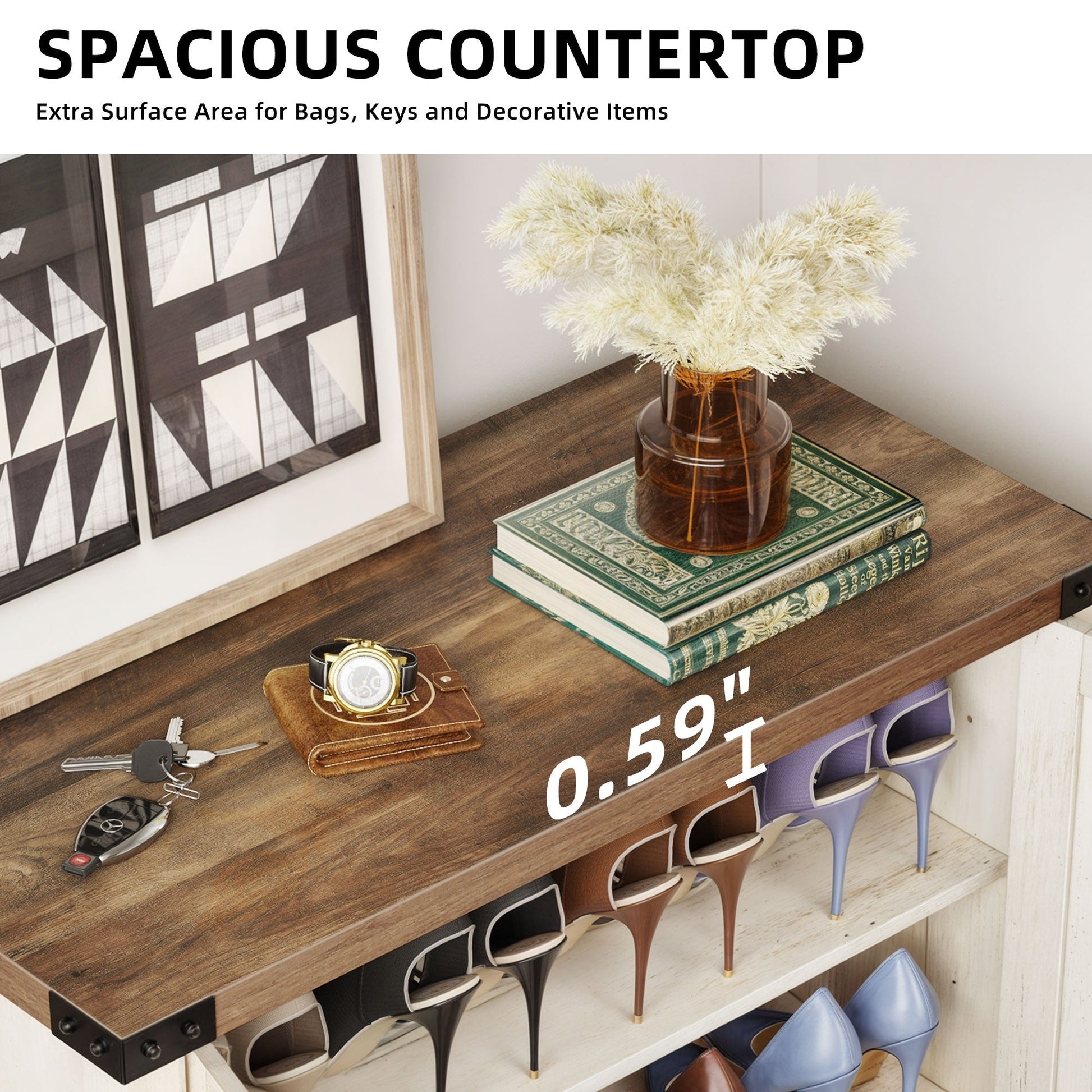 - Grand espace de rangement pouvant accueillir 15 à 20 paires de chaussures et petits objets.