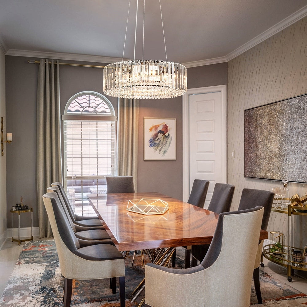 Lustre rond moderne en cristal OYIPRO 6/8/12 lumières en forme de tambour pour îlot de cuisine