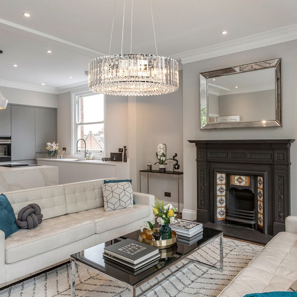 Sublimez votre espace avec l'élégance moderne du lustre en cristal OYIPRO. Doté d'un abat-jour tambour en cristal transparent et d'un élégant cadre circulaire chromé, noir ou doré, ce lustre allie glamour intemporel et style contemporain. Disponible en configurations 6, 8 ou 12 lumières, il offre un éclairage chaleureux et rayonnant, idéal pour les salles à manger, les cuisines, les salons et bien plus encore. Sa chaîne de suspension réglable de 150 cm et son rosace compatible avec les plafonds inclinés permettent une installation flexible, tandis que ses touches de cristal de haute qualité apportent une touche de luxe à tout intérieur. Compatible avec les ampoules et interrupteurs à intensité variable, il est parfait pour créer l'ambiance idéale dans n'importe quel espace.