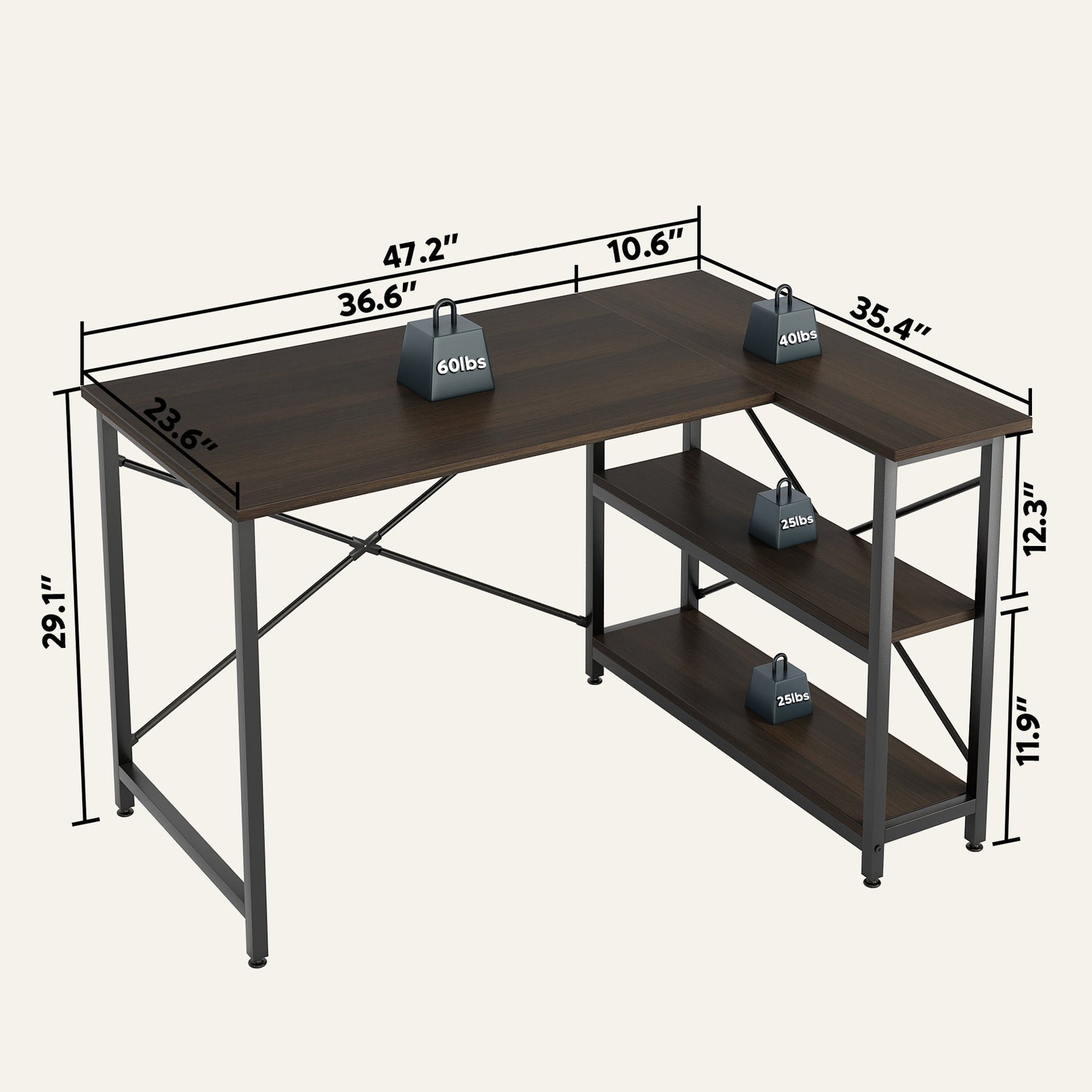 Petit bureau en L avec étagères de rangement Bureau d'ordinateur d'angle