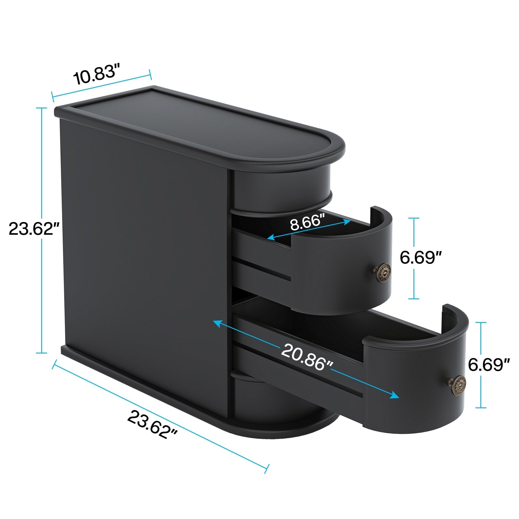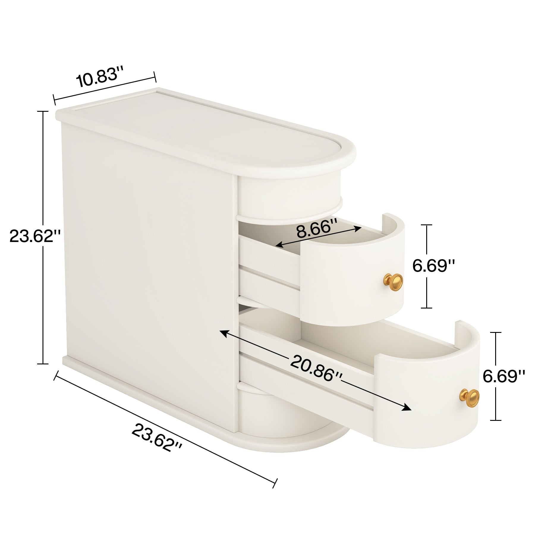 Table d'appoint étroite à deux tiroirs en bois massif