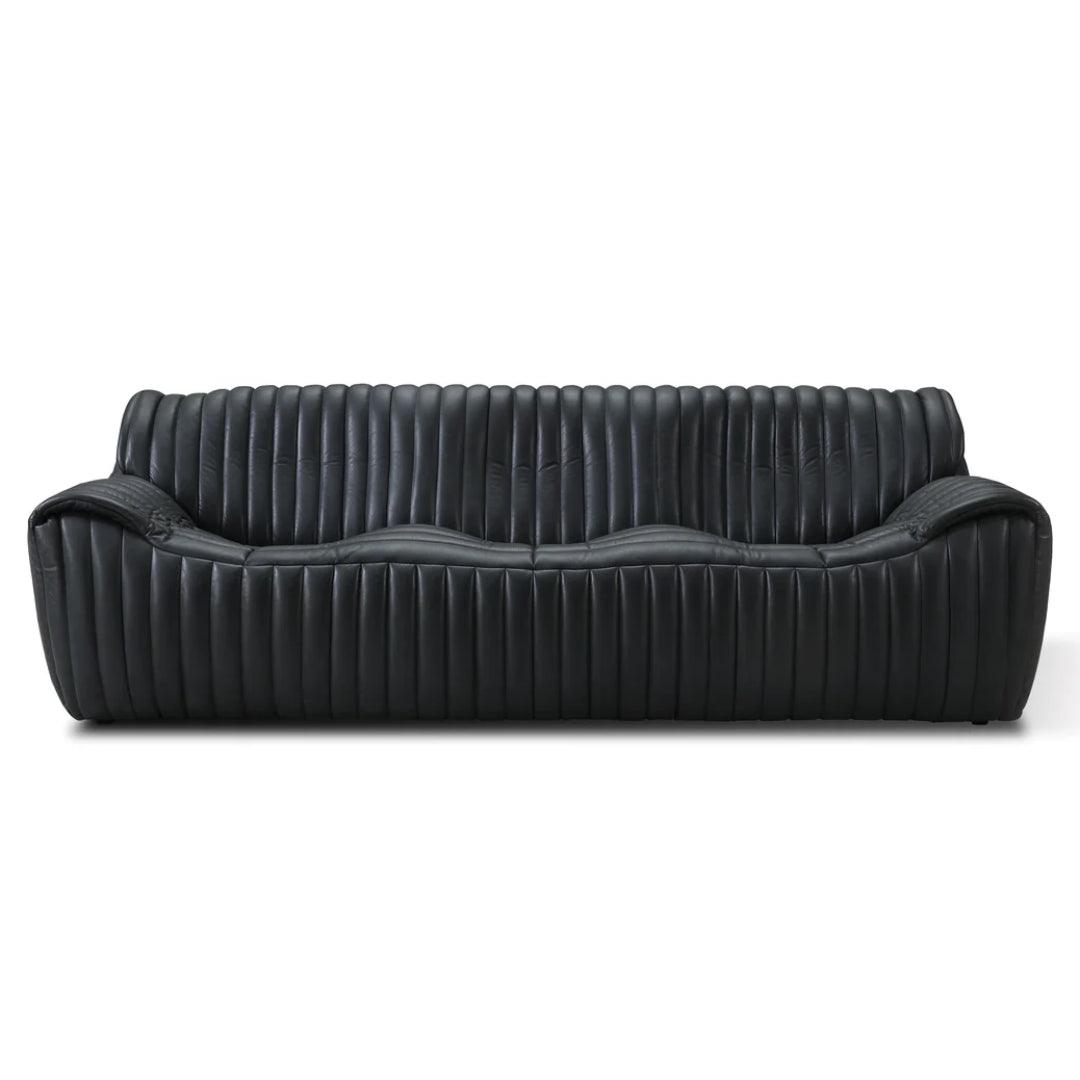 Vous cherchez un canapé à la fois audacieux et ultra confortable ? Ce canapé en cuir pleine fleur noir volcanique est incroyable ! Son design industriel chic et décontracté s'allie à des lignes épurées et texturées. Son cuir noir profond est d'une grande richesse et lui confère une touche moderne. De plus, il est doux et confortable. Il conviendra parfaitement à un loft ou à tout intérieur moderne : c'est un véritable atout.