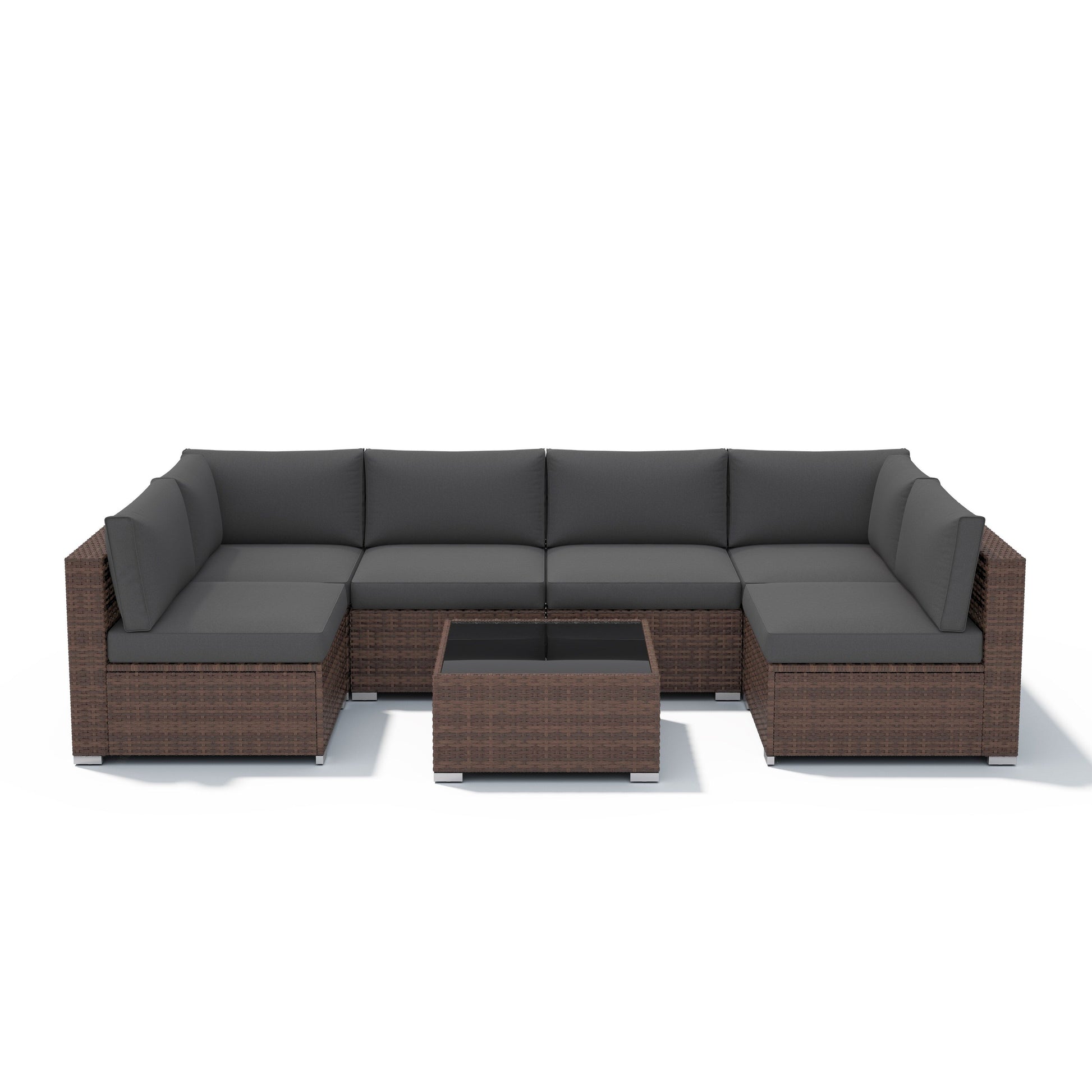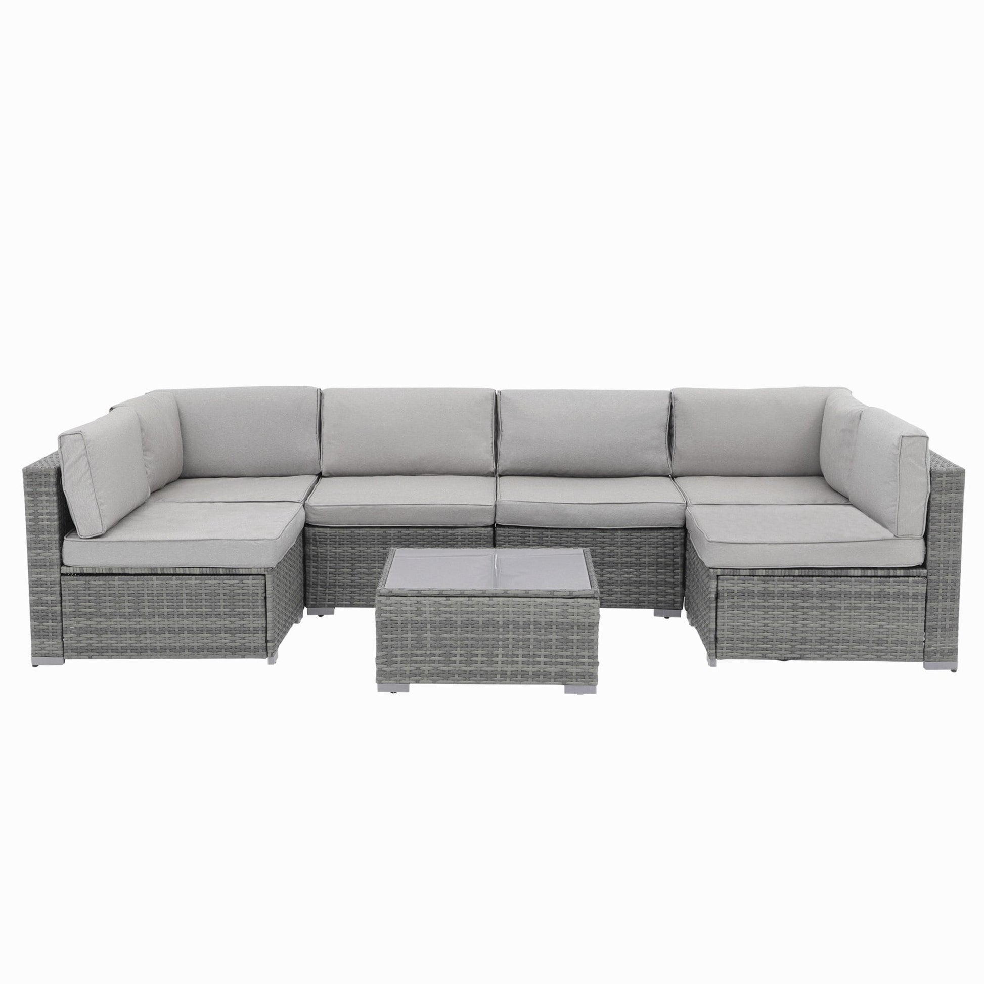 Ensemble de canapés d'extérieur sectionnels rembourrés en osier et acier, 7 pièces